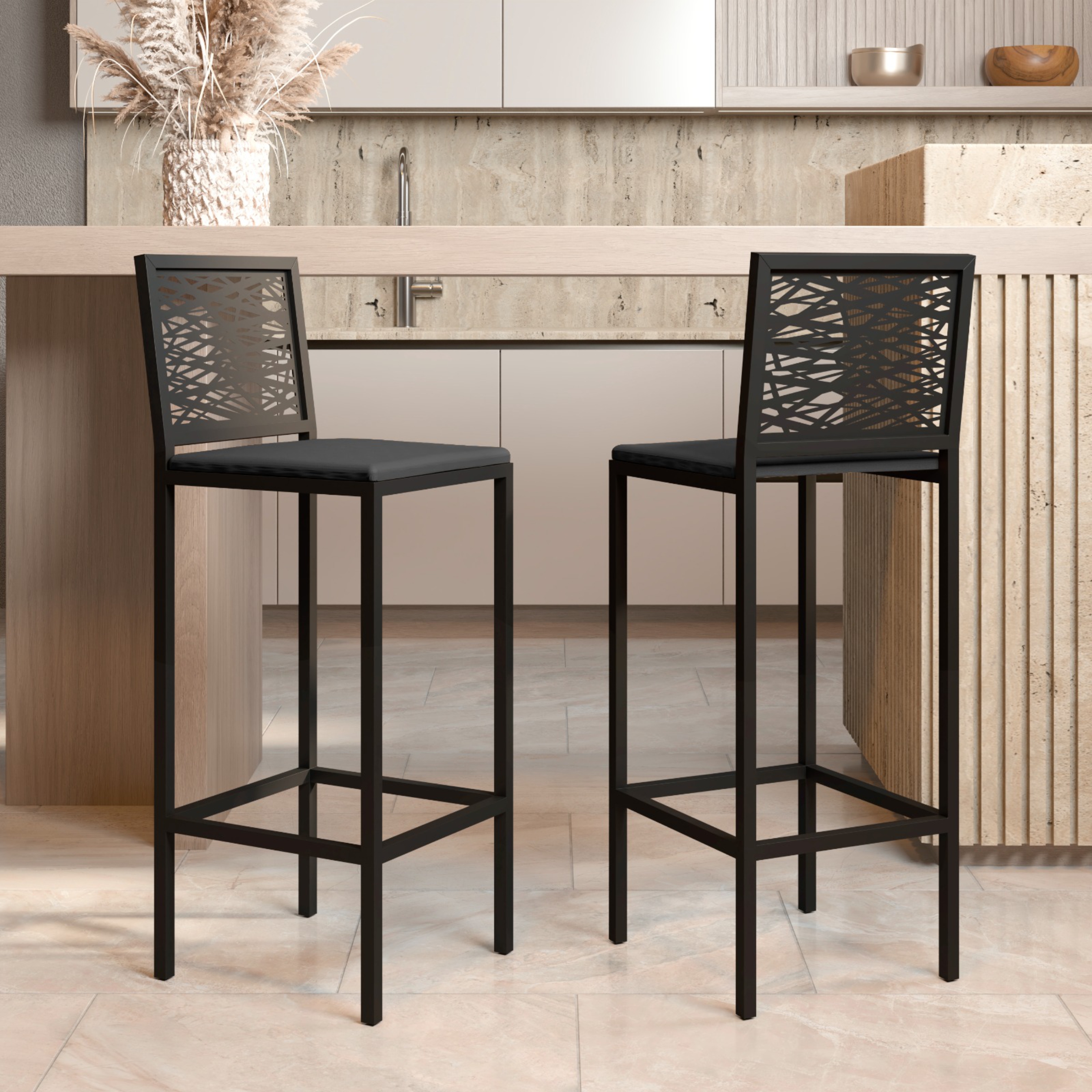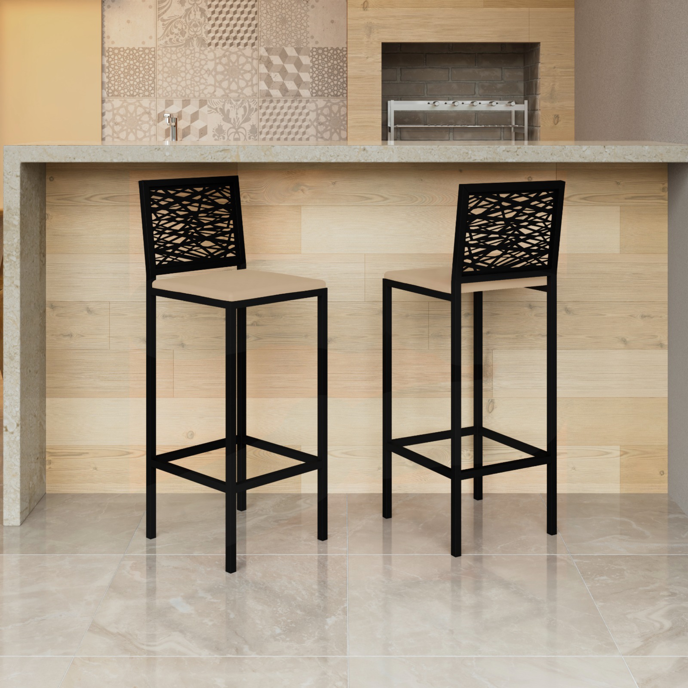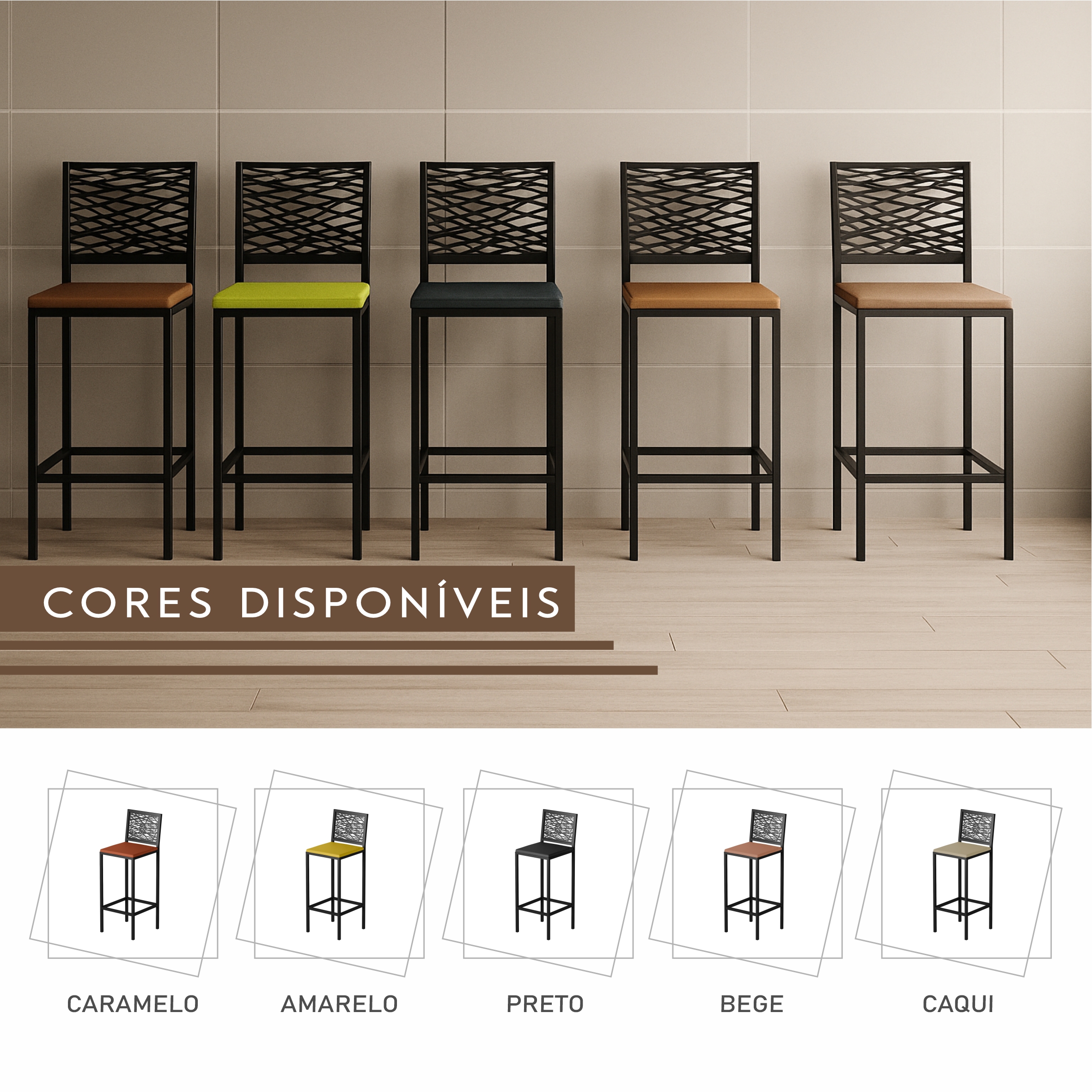 Banqueta Astana com encosto em estrutura aço carbono, com pintura eletrostática, com encosto de chapa de aço 0,6mm, assento de corino composto de espuma de 20mm.