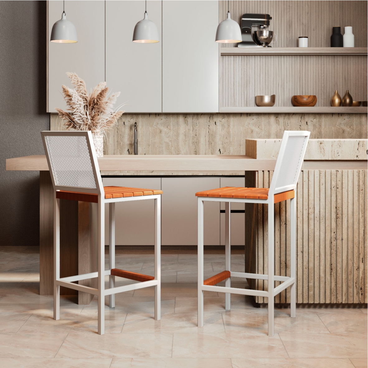Banqueta Dublin Branca de Aço com Madeira Maciça Rústica de Demolição