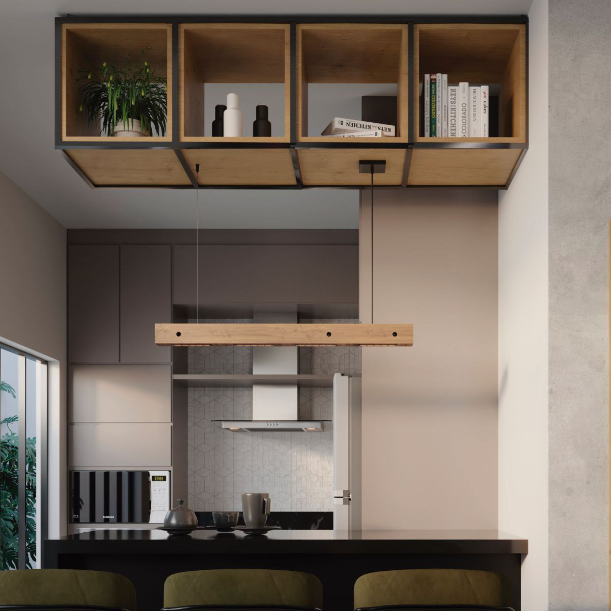Pendente em madeira maciça de demolição. Produto com 4 spots de 10w embutido. Design contemporâneo para diversos ambientes.