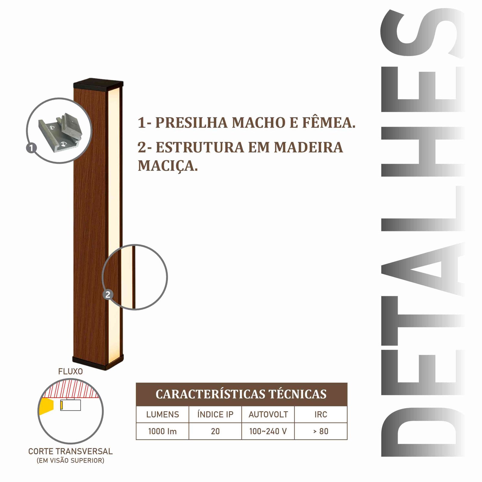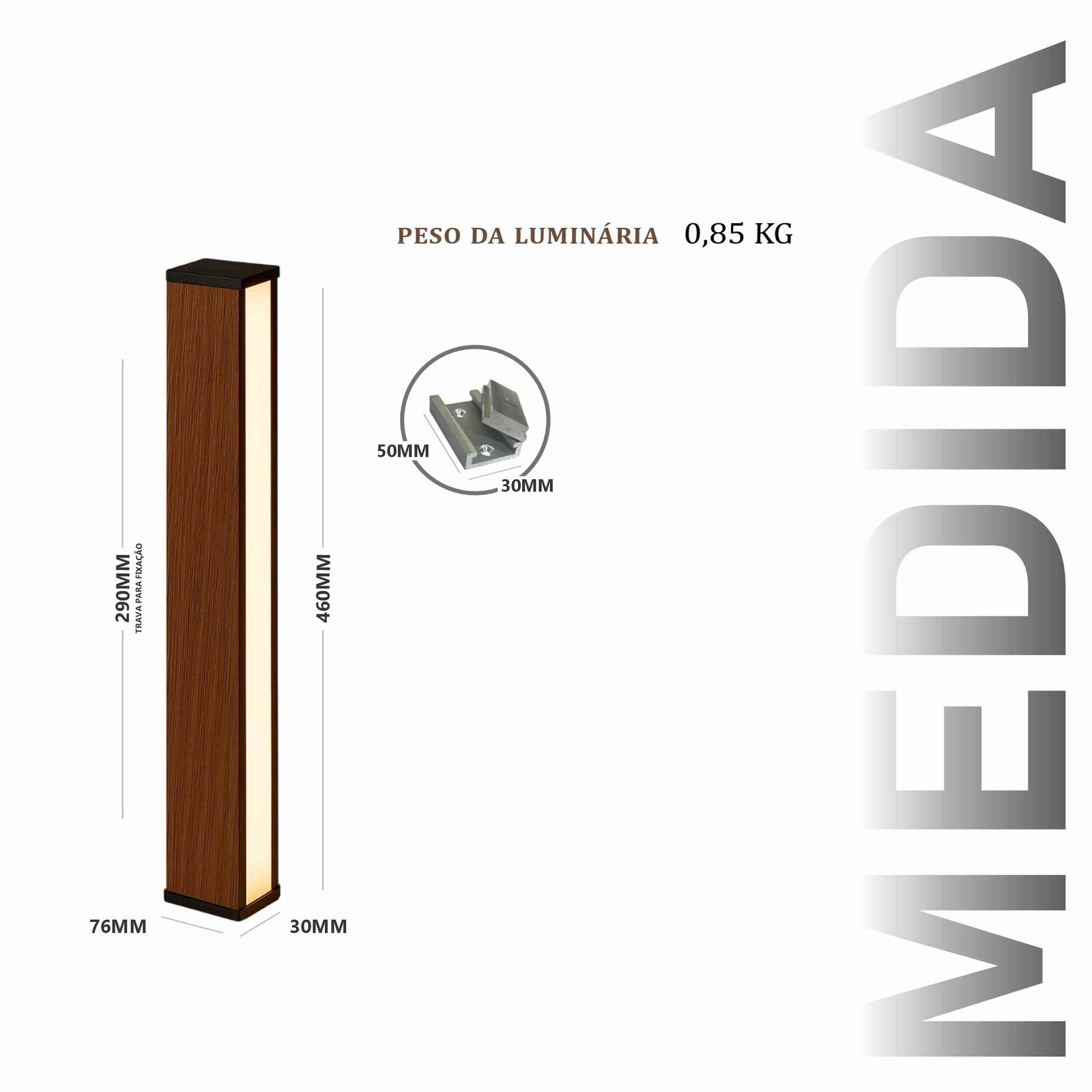 Arandela em madeira maciça de demolição. Produto com 1 perfil de LED no centro, com driver embutido de 9w. Design contemporâneo para diversos ambientes.