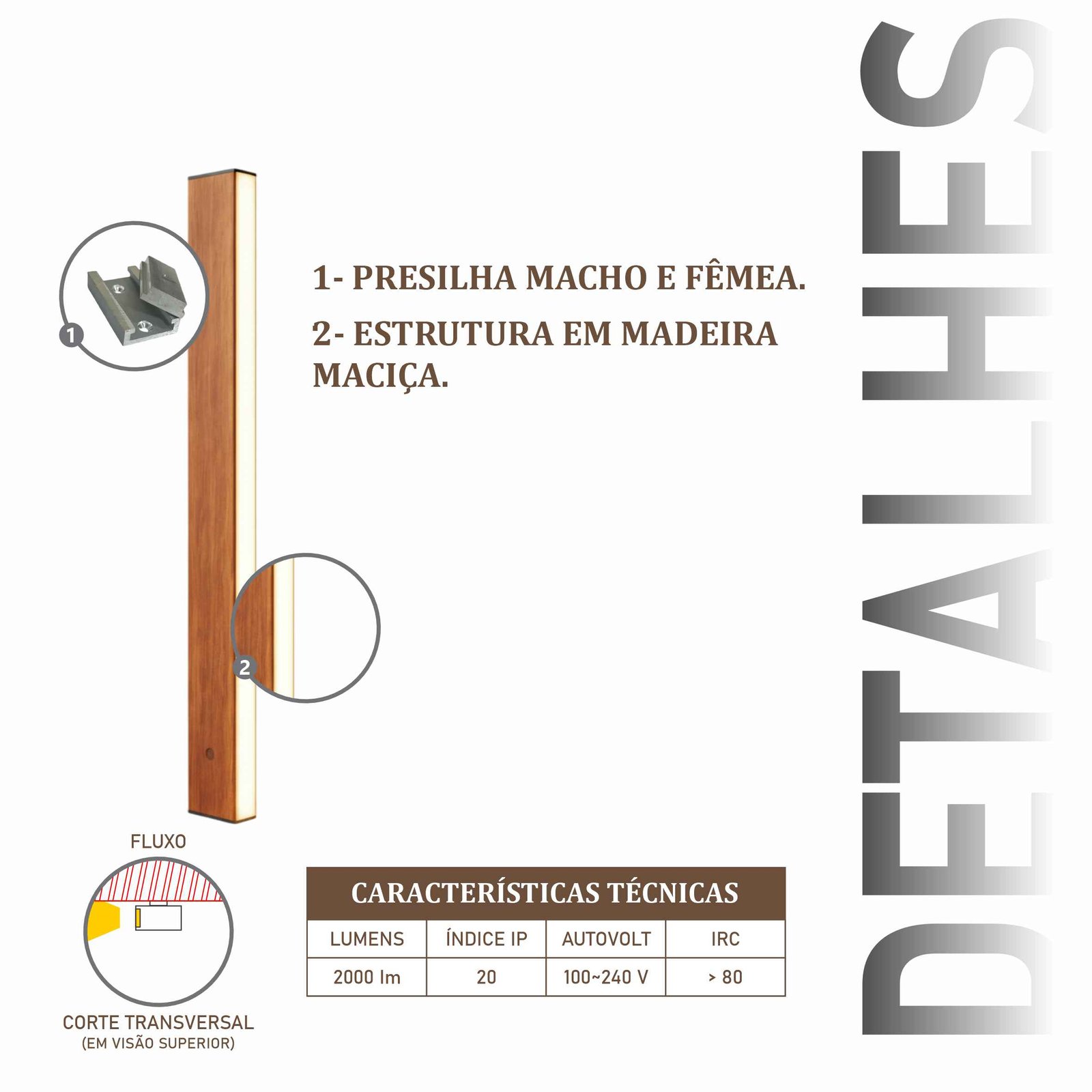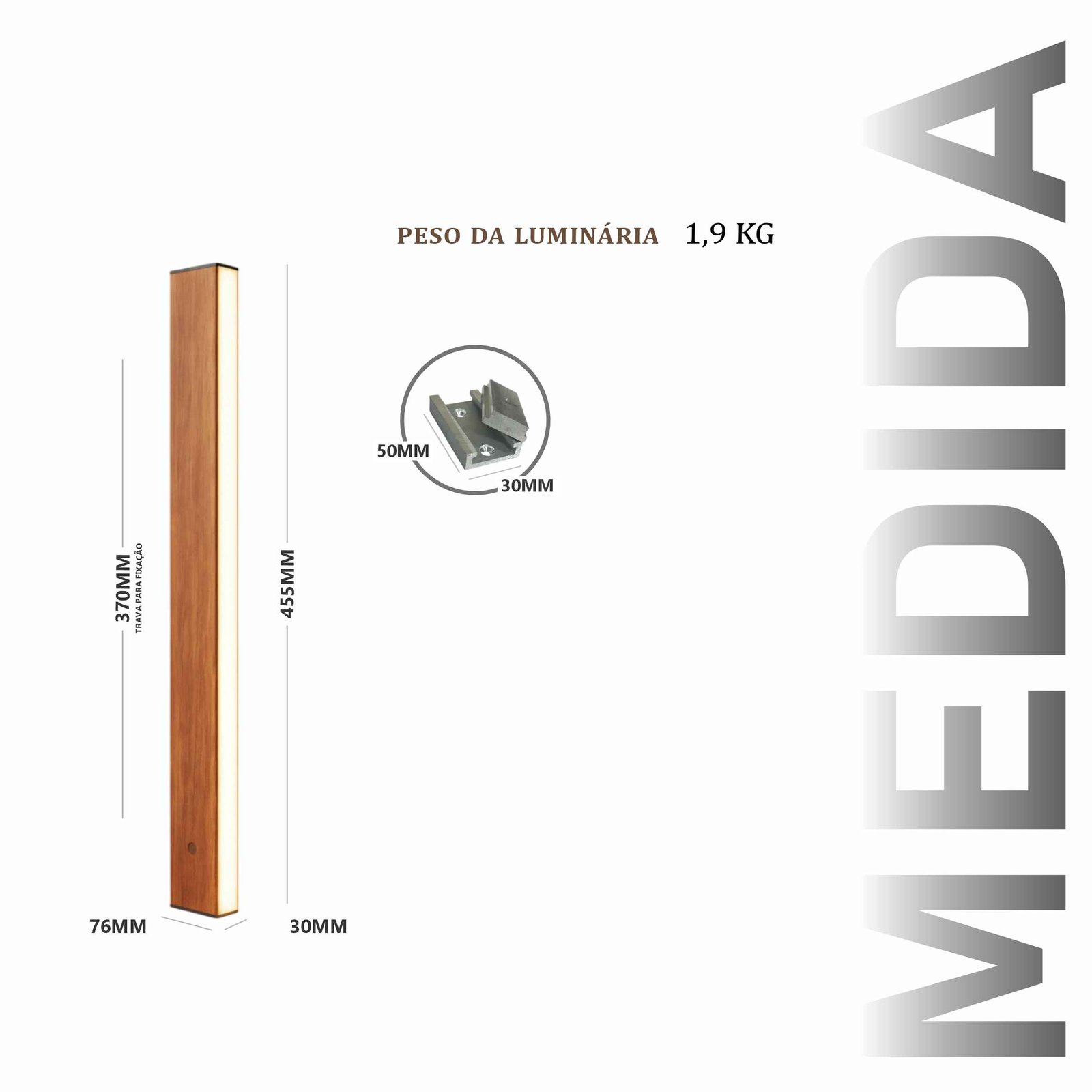 Arandela em madeira maciça de demolição. Produto com 1 perfil de LED no centro, com driver embutido de 18w. Design contemporâneo para diversos ambientes.