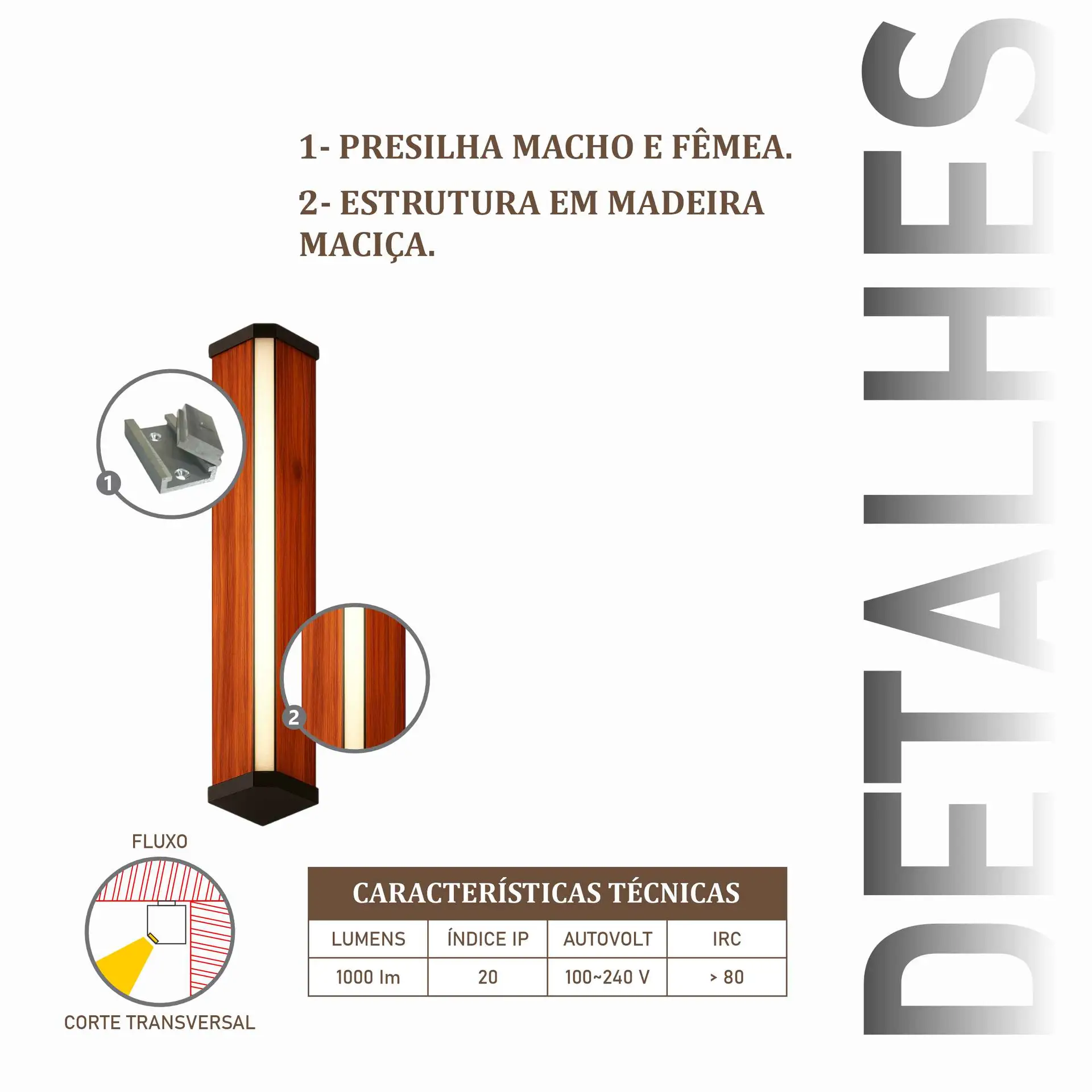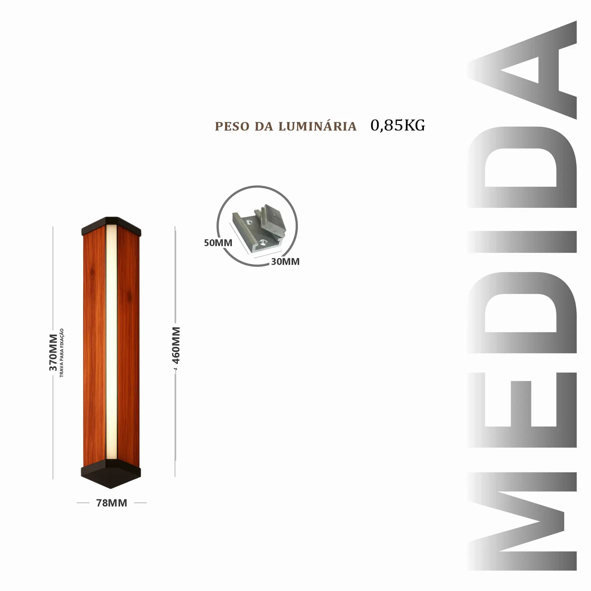 Arandela em madeira maciça de demolição. Produto com 1 perfil de LED em 45ª , com driver embutido de 9w. Design contemporâneo para diversos ambientes.