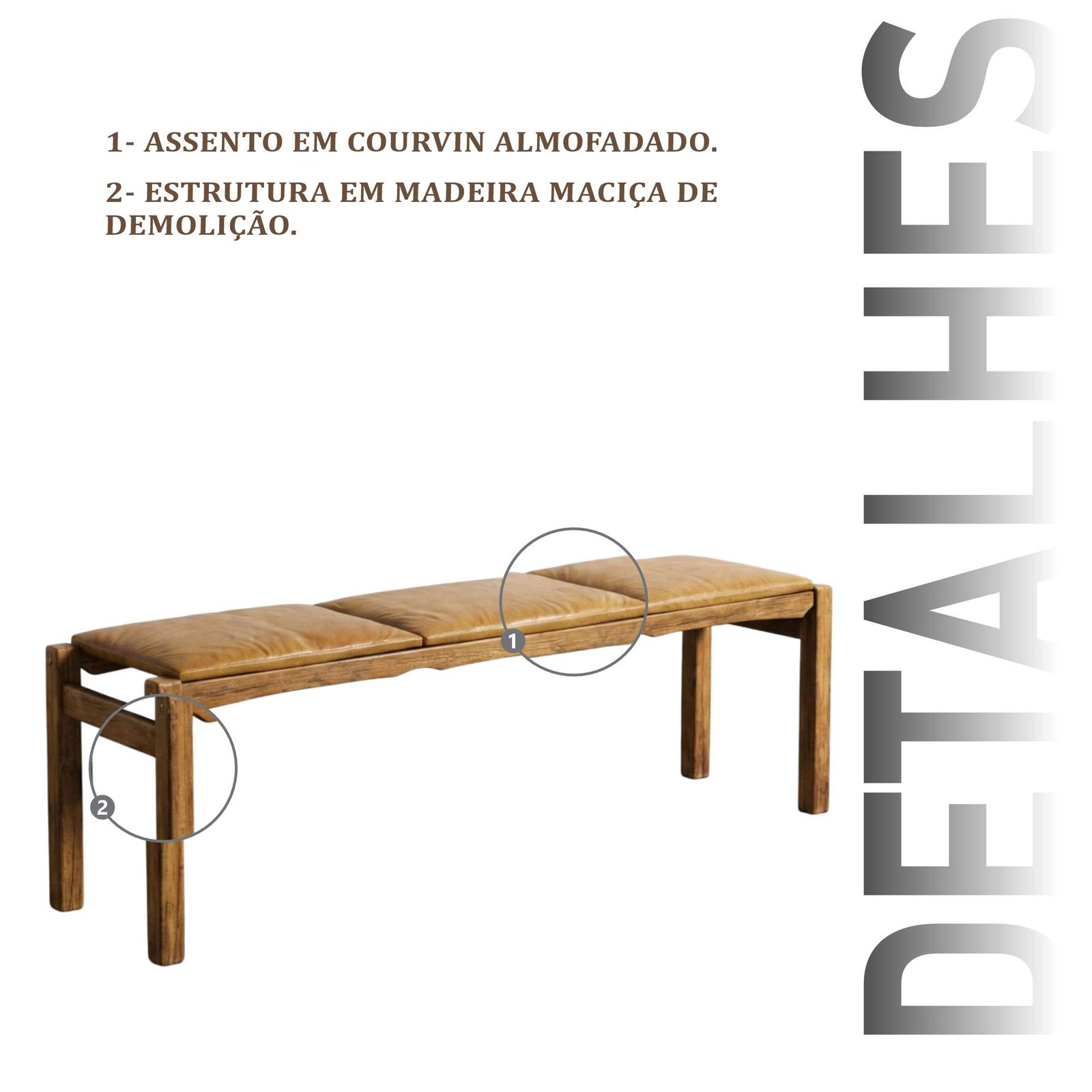 Banco Paris de 3 lugares, produzido em courvin e madeira maciça de demolição. Design rústico e contemporâneo, perfeito para trazer charme, conforto e autenticidade para qualquer ambiente.