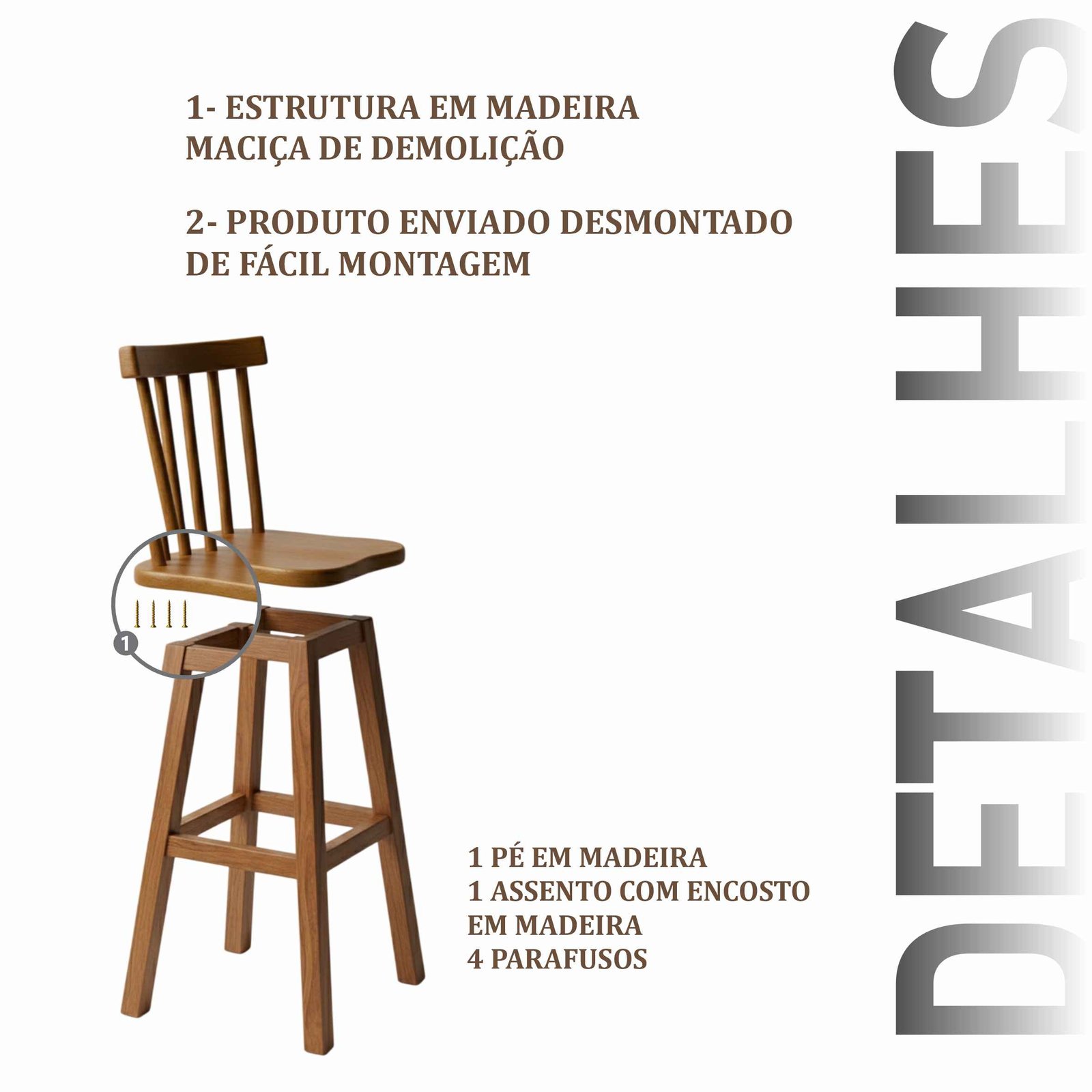 Banqueta Irã em madeira maciça de demolição. Leve o charme rústico e sustentável para sua casa. Peça única, forte e durável. Produto enviado desmontado.