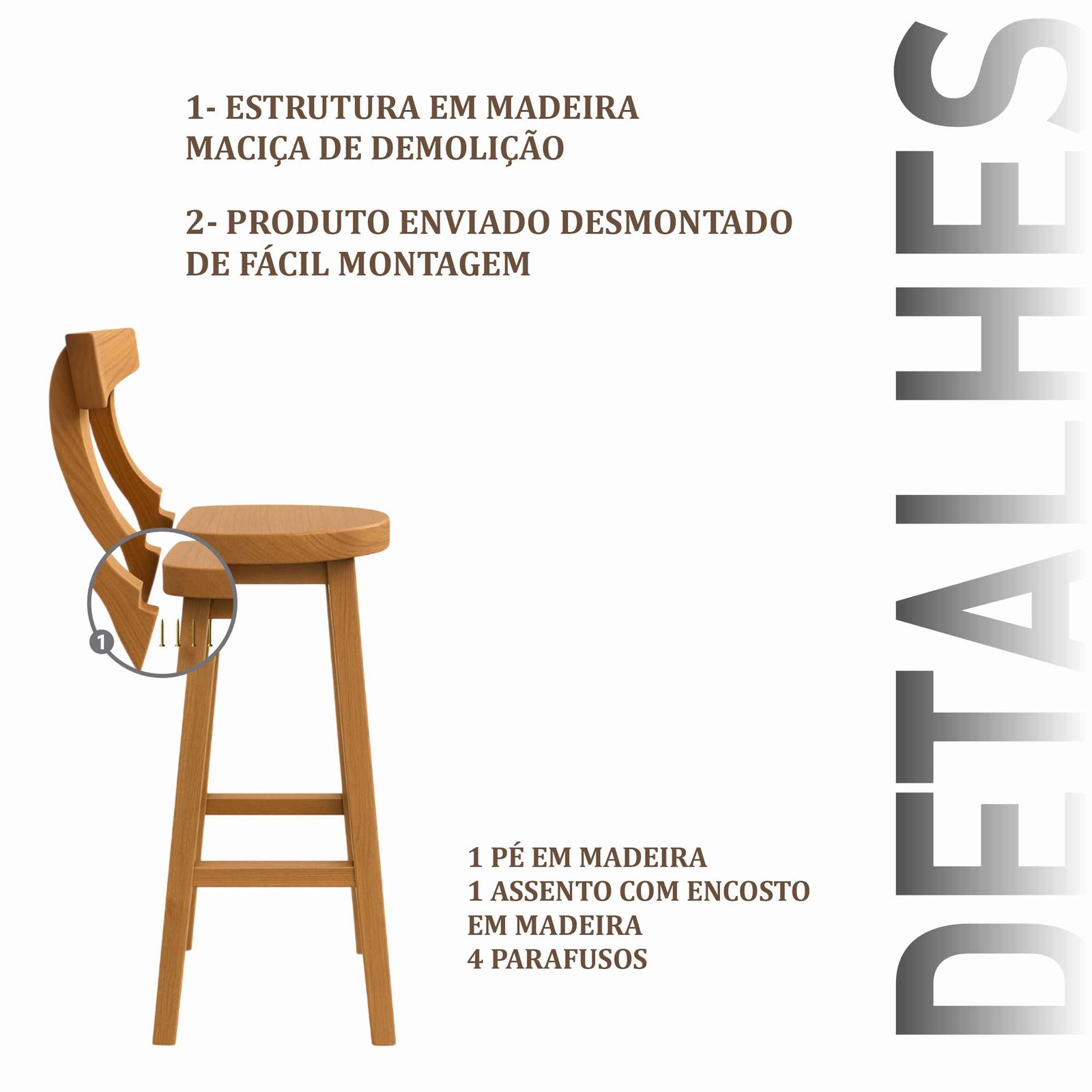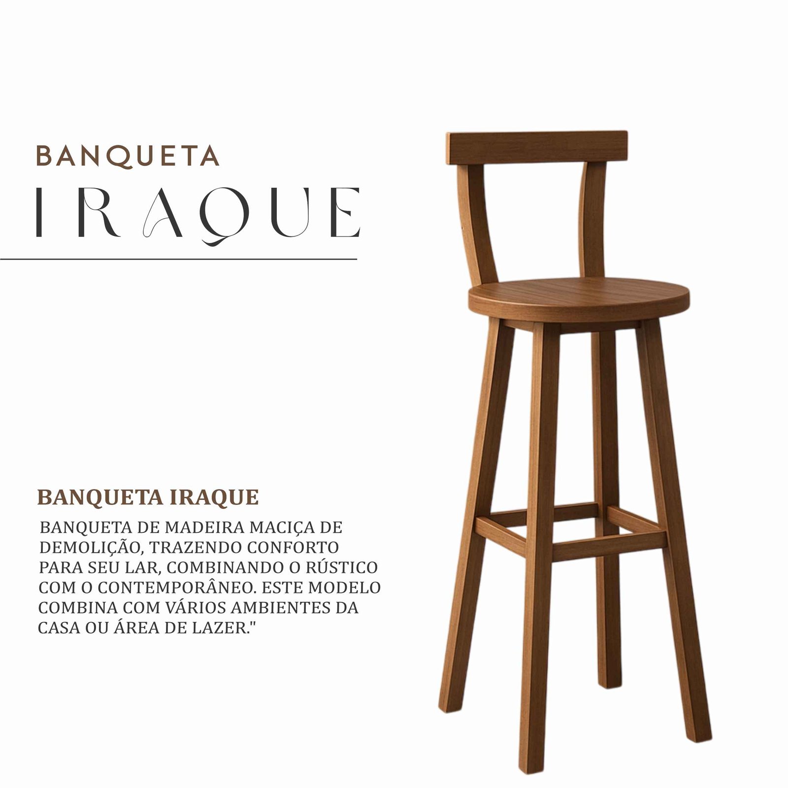 Banqueta Iraque Madeira Maciça Rústica de Demolição