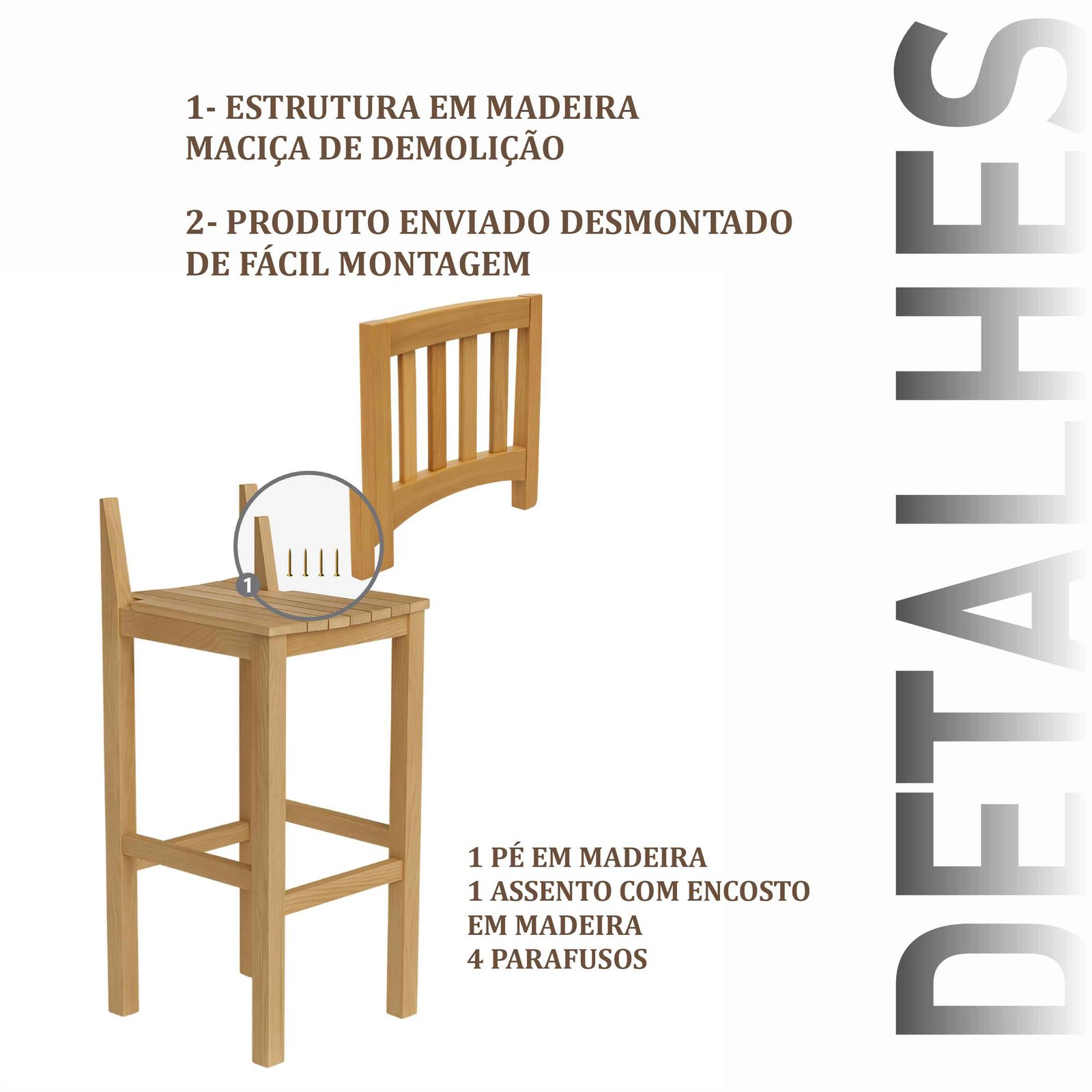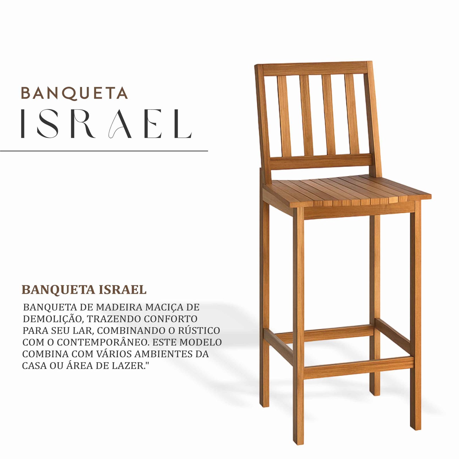 Banqueta Israel Madeira Maciça Rústica de Demolição