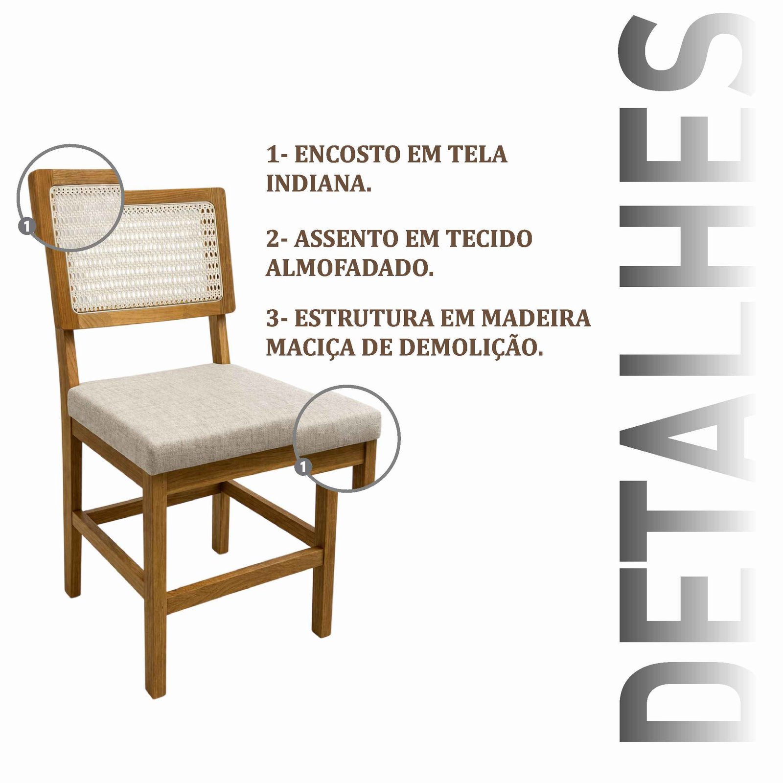 Cadeira Cabo Verde Confort em madeira maciça de demolição com assento de tecido e encosto em tela Indiana. Leve o charme rústico e sustentável para sua casa. Peça única, forte e durável. Produto enviado desmontado.