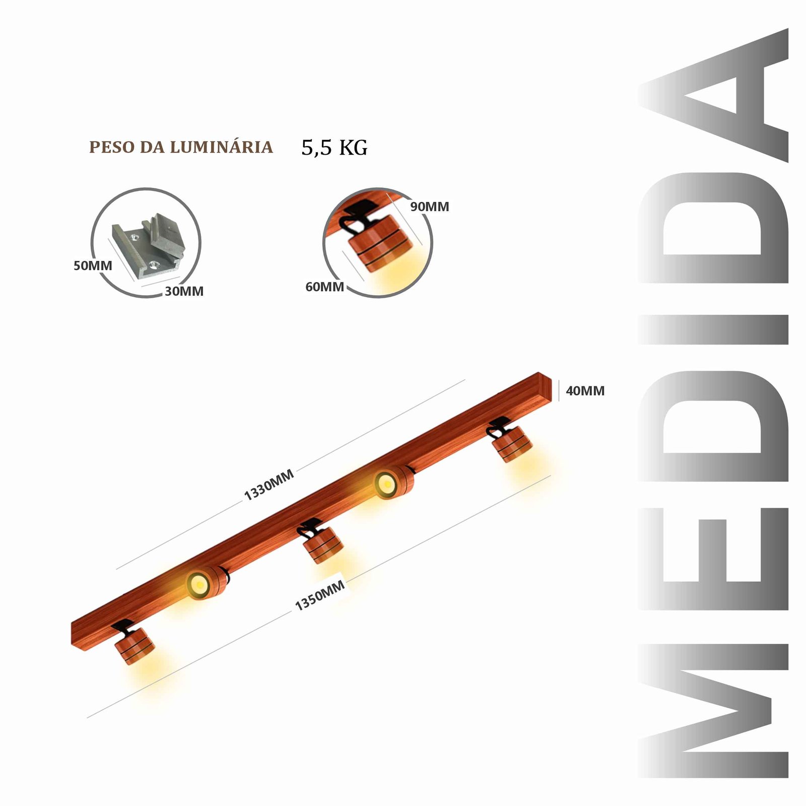 Luminária Led Carolina 35w 3500lm de Madeira Maciça Rústica de Demolição