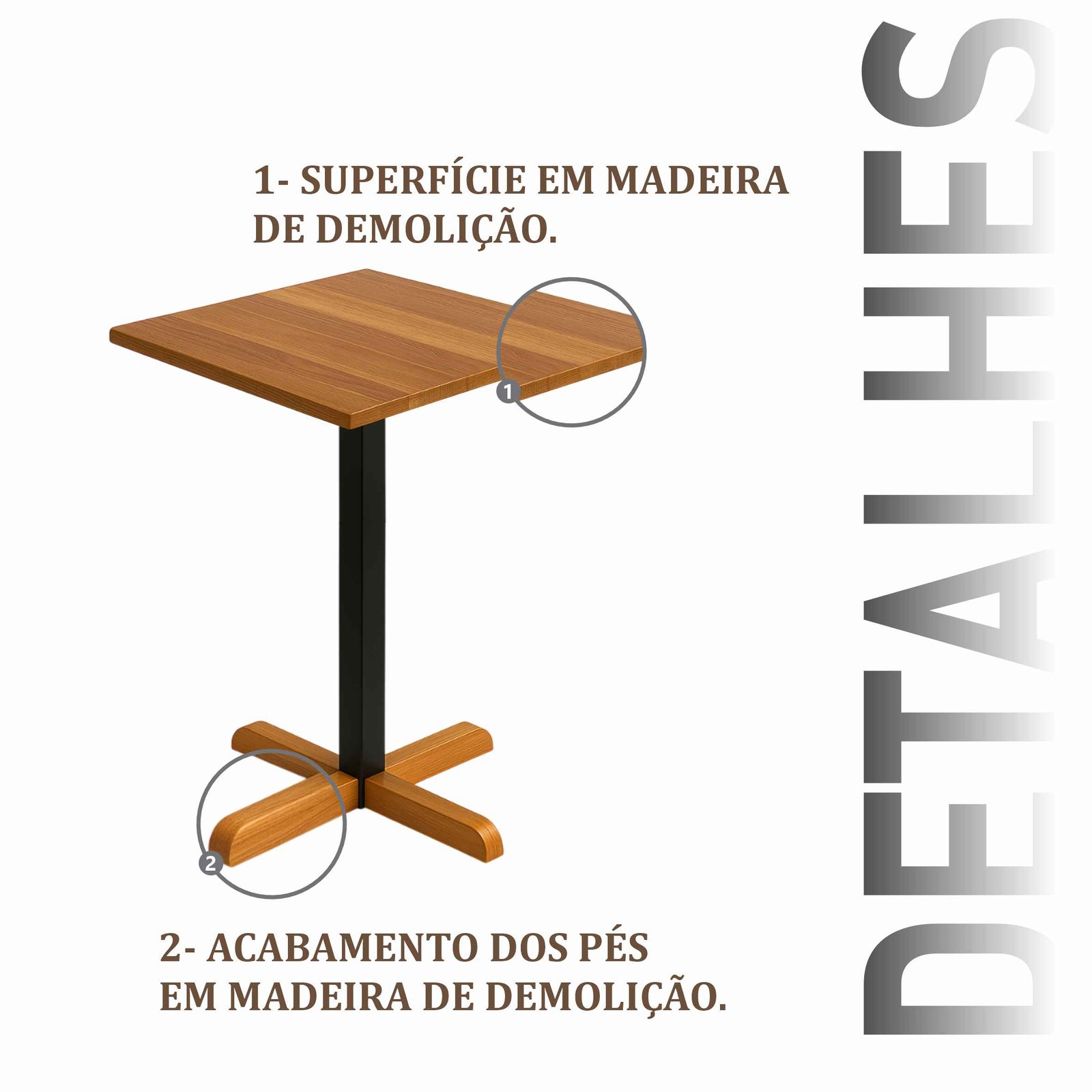 Mesa Montenegro Quadrada 800x800mm Madeira Maciça de Demolição