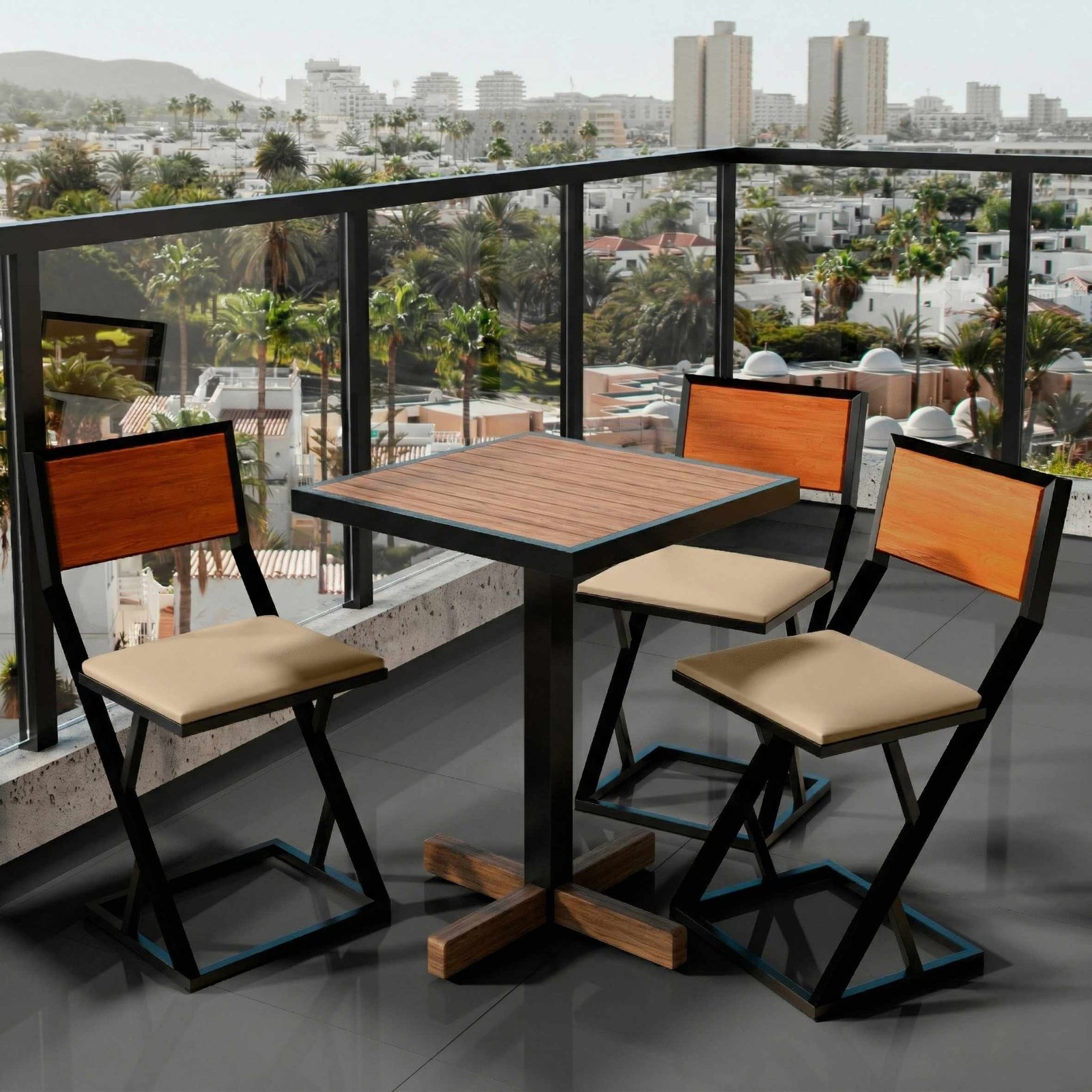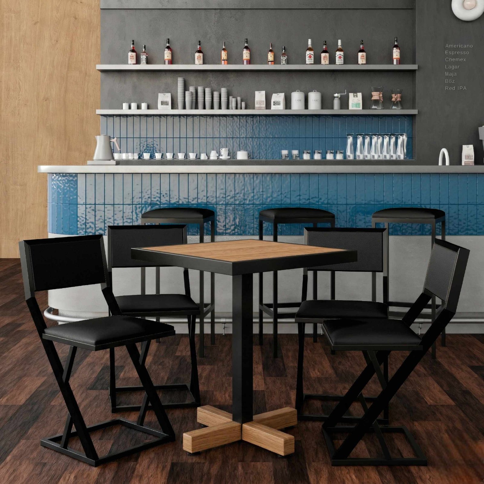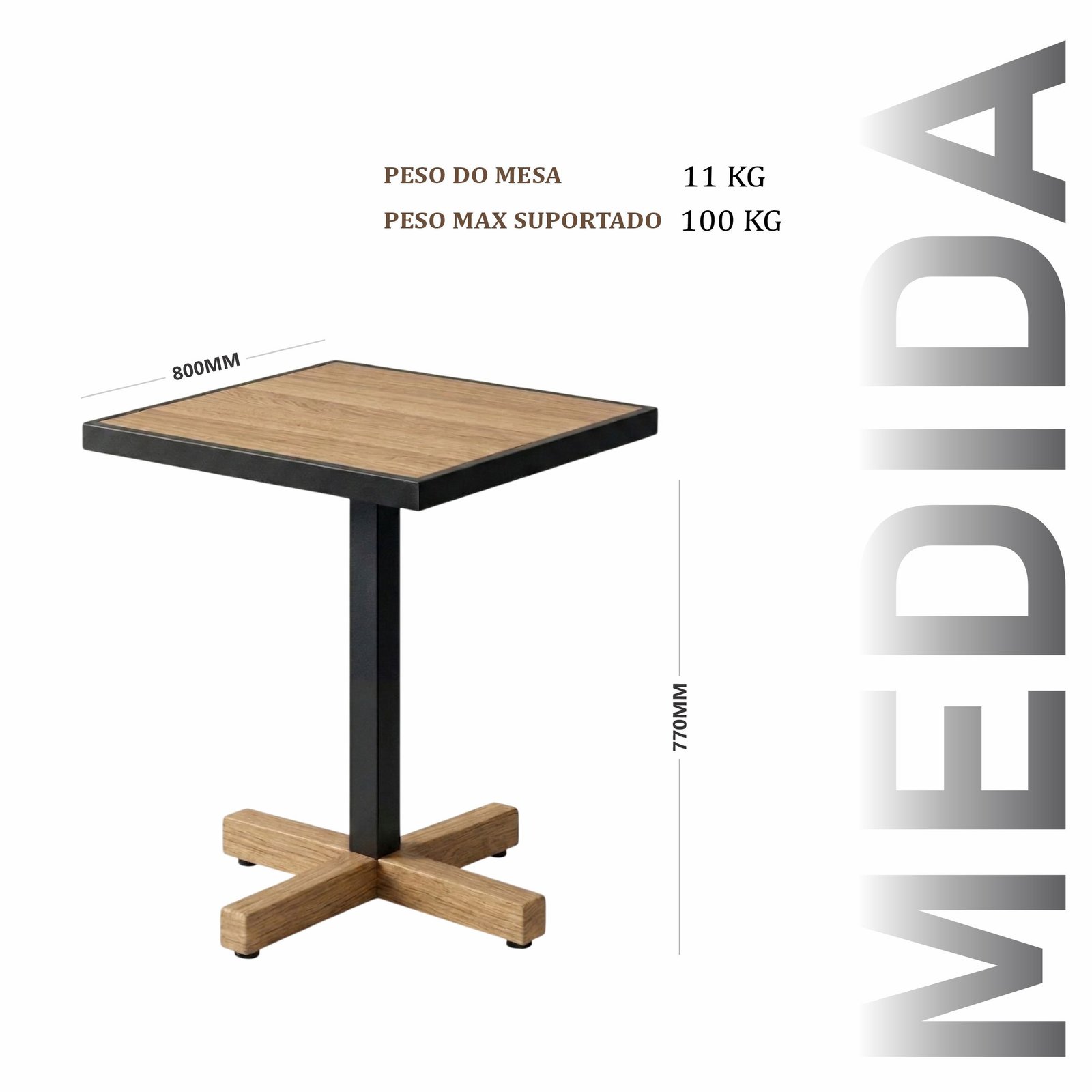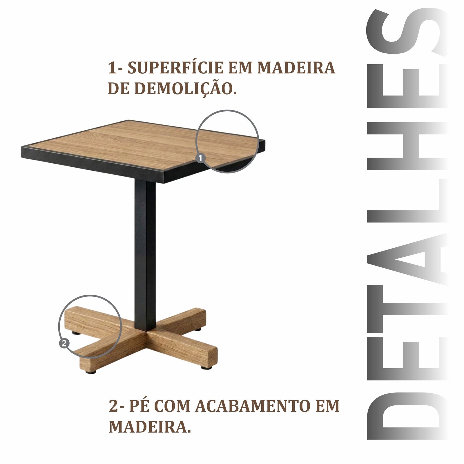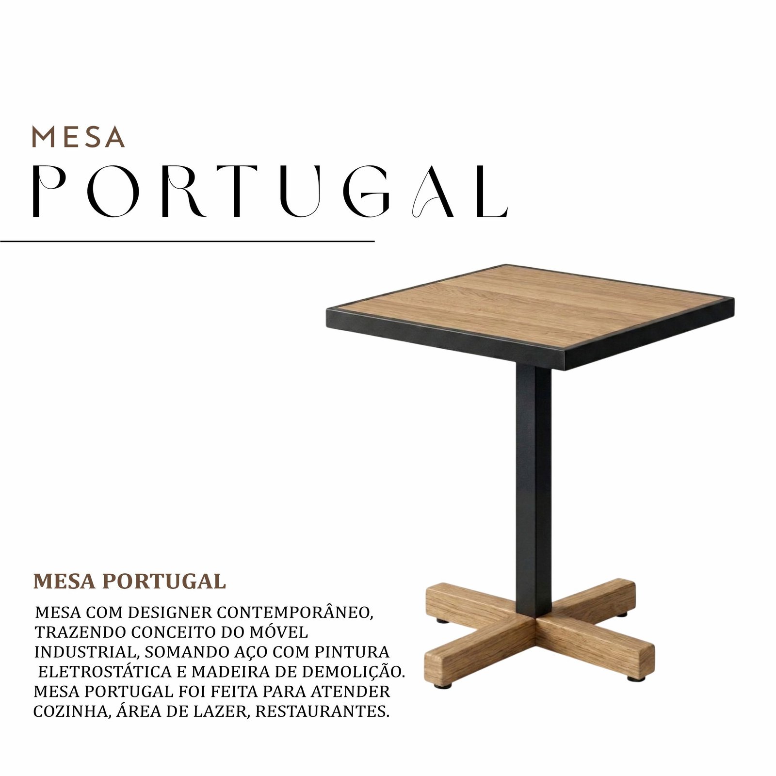 Mesa Portugal une aço com pintura eletrostática e madeira de demolição, design industrial ideal para cozinha, lazer e restaurantes.
