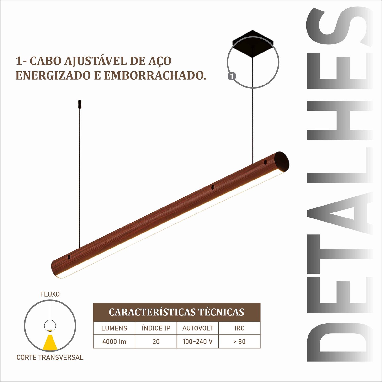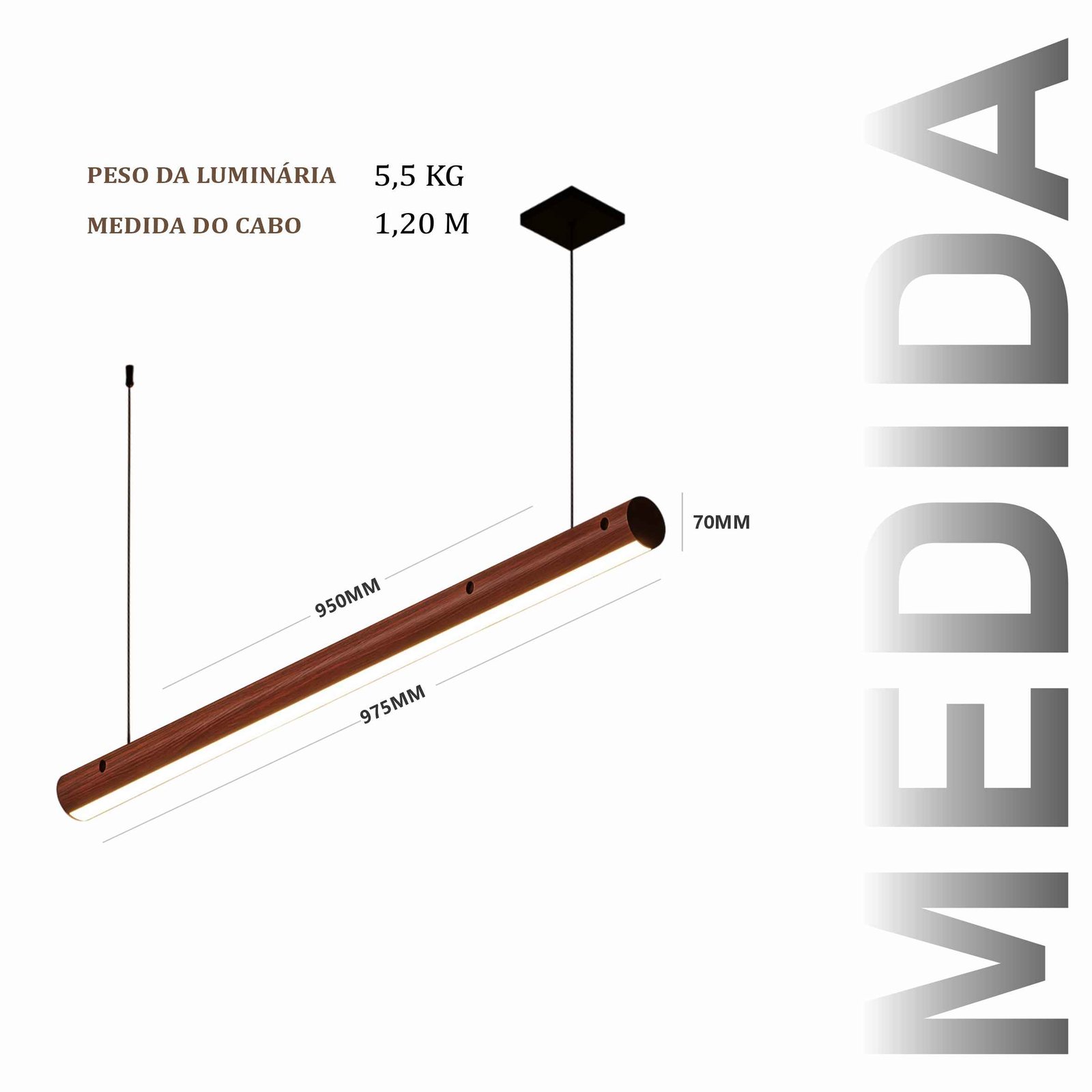 Pendente em madeira maciça de demolição. Produto com 1 perfil de LED no centro, com driver embutido de 36w. Design contemporâneo para diversos ambientes.