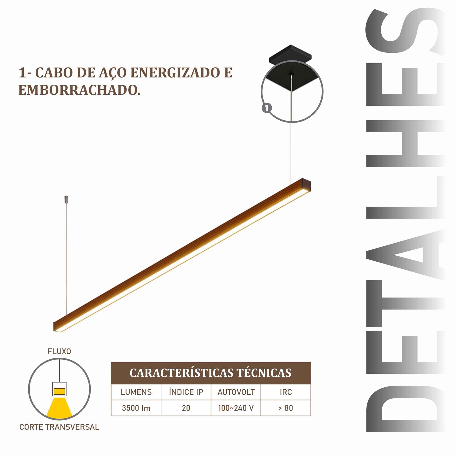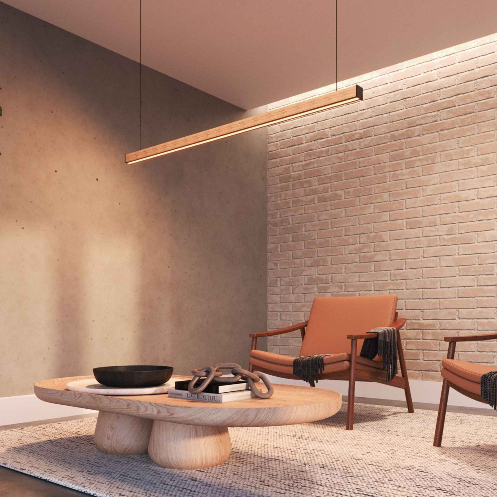 Pendente Egito em madeira de demolição com perfil slim e LED embutido. Design contemporâneo que alia beleza, conforto e iluminação perfeita.