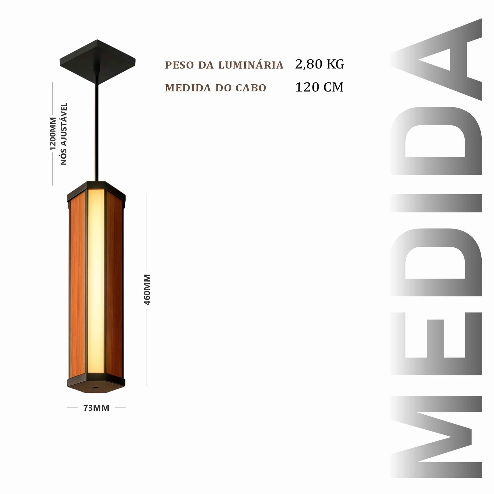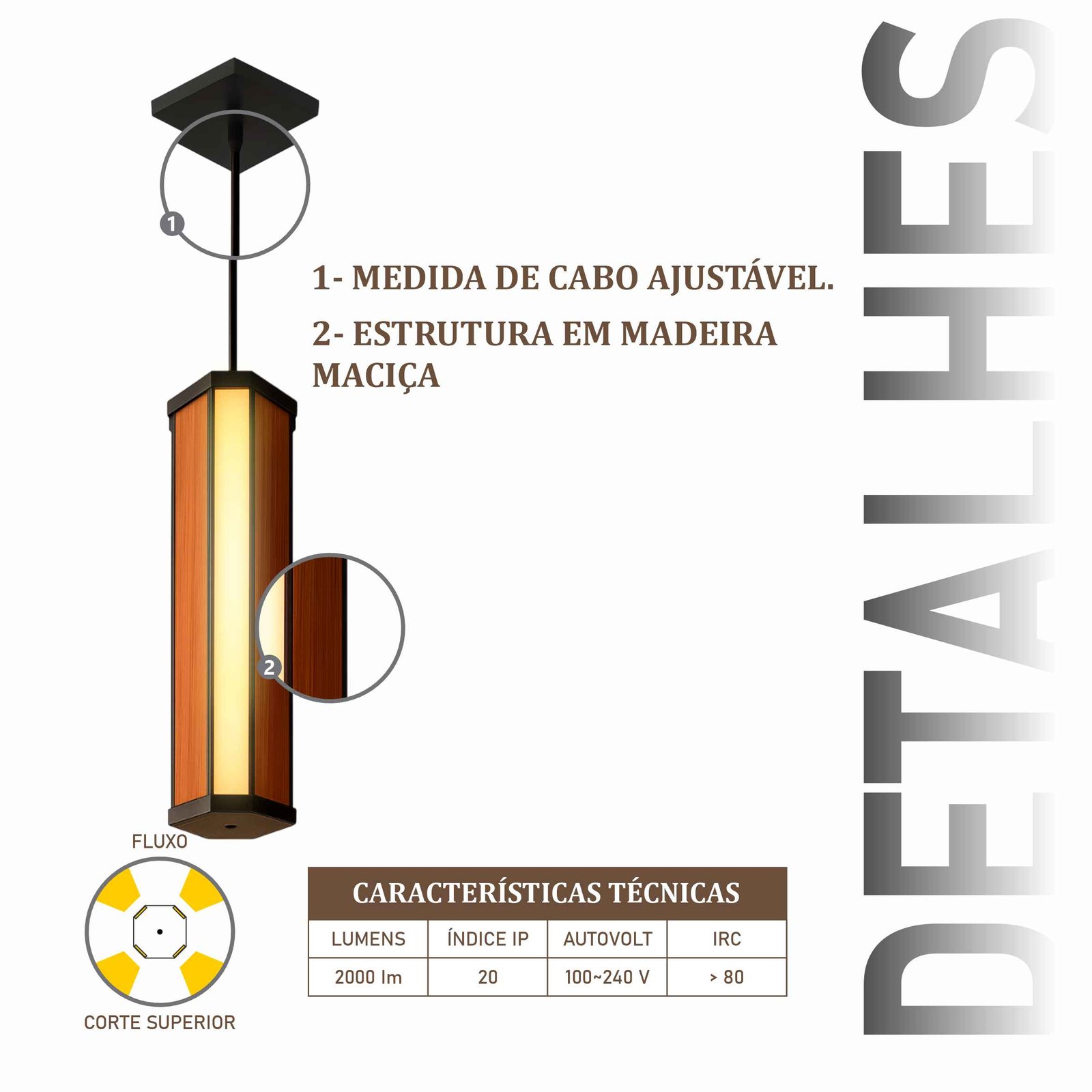 Pendente Led Esmeralda Canto 36w 4000lm Bivolt de Madeira Maciça Rústica de Demolição