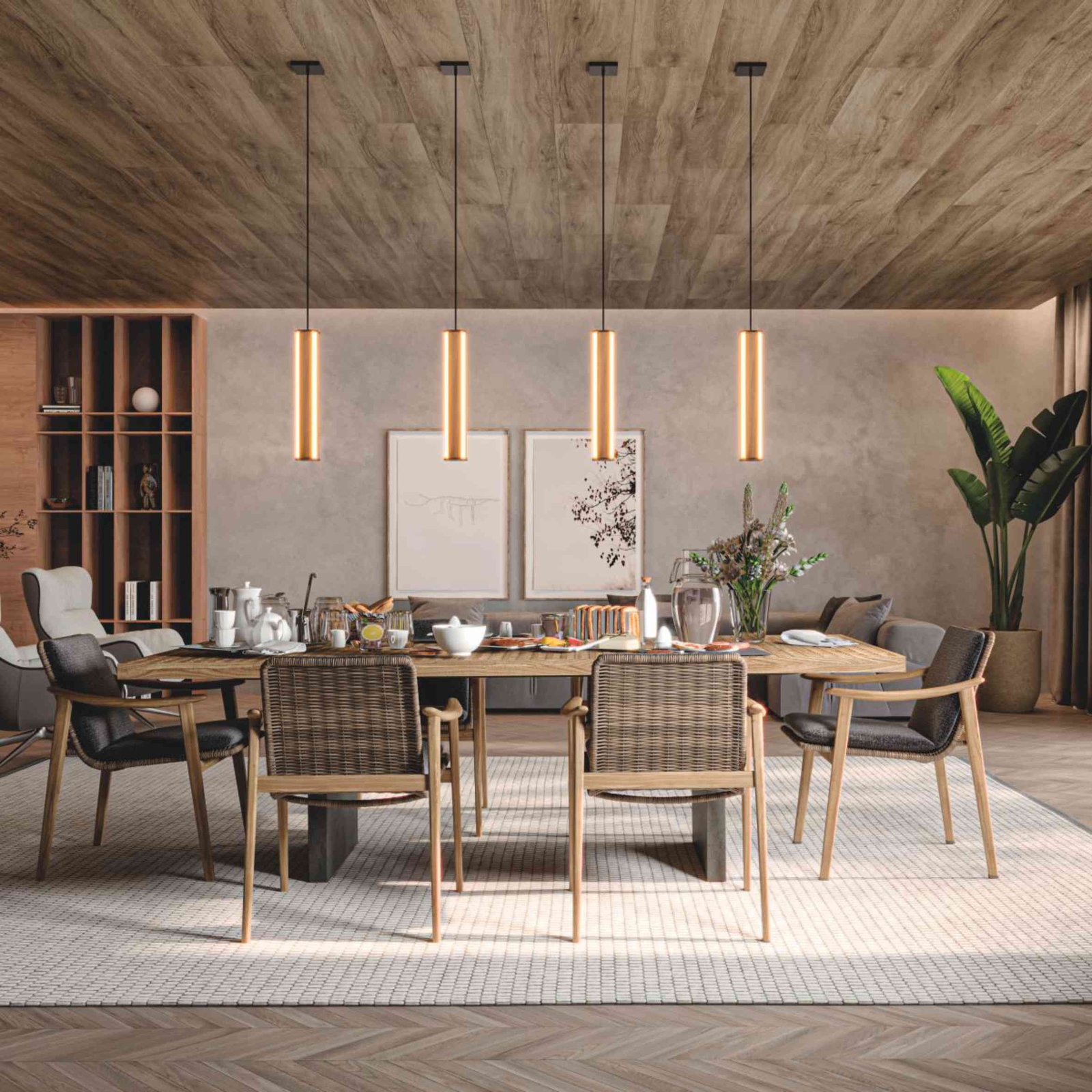 Pendente em madeira maciça de demolição. Produto com 4 perfis de LED em 45º, com driver embutido de 36w. Design contemporâneo para diversos ambientes.