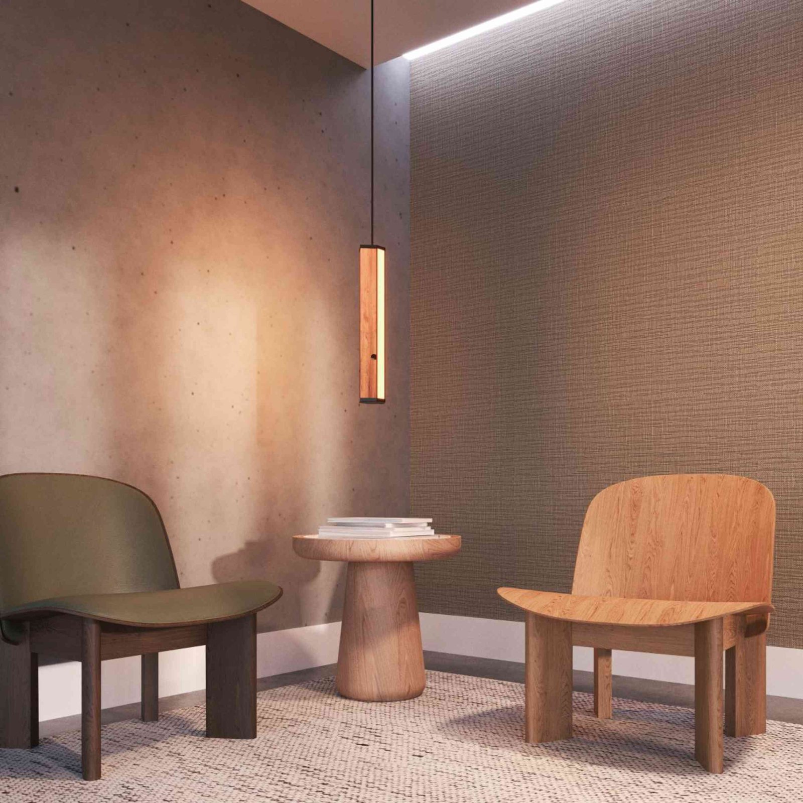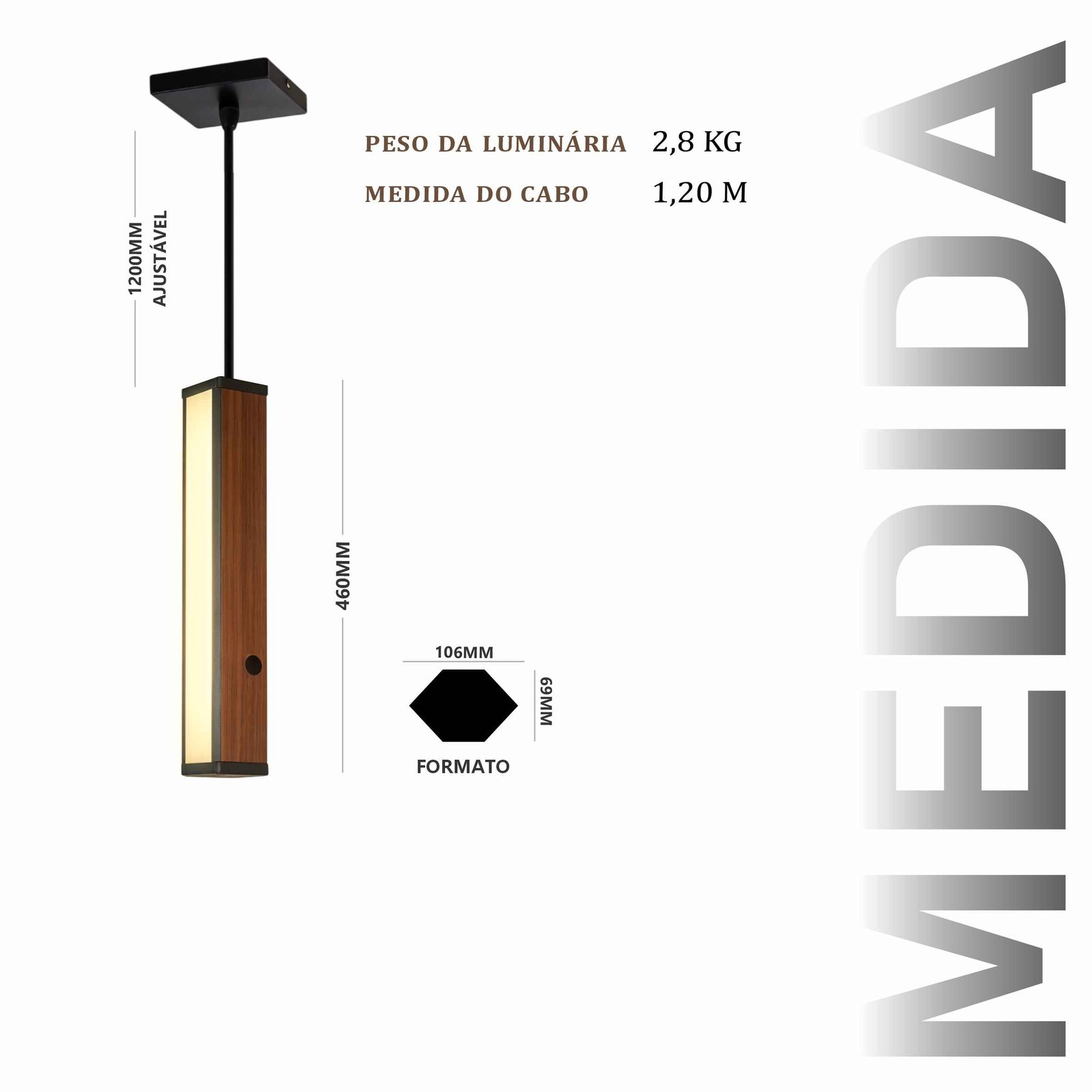 Pendente em madeira maciça de demolição. Produto com 2 perfis de LED no centro, com driver embutido de 36w. Design contemporâneo para diversos ambientes.