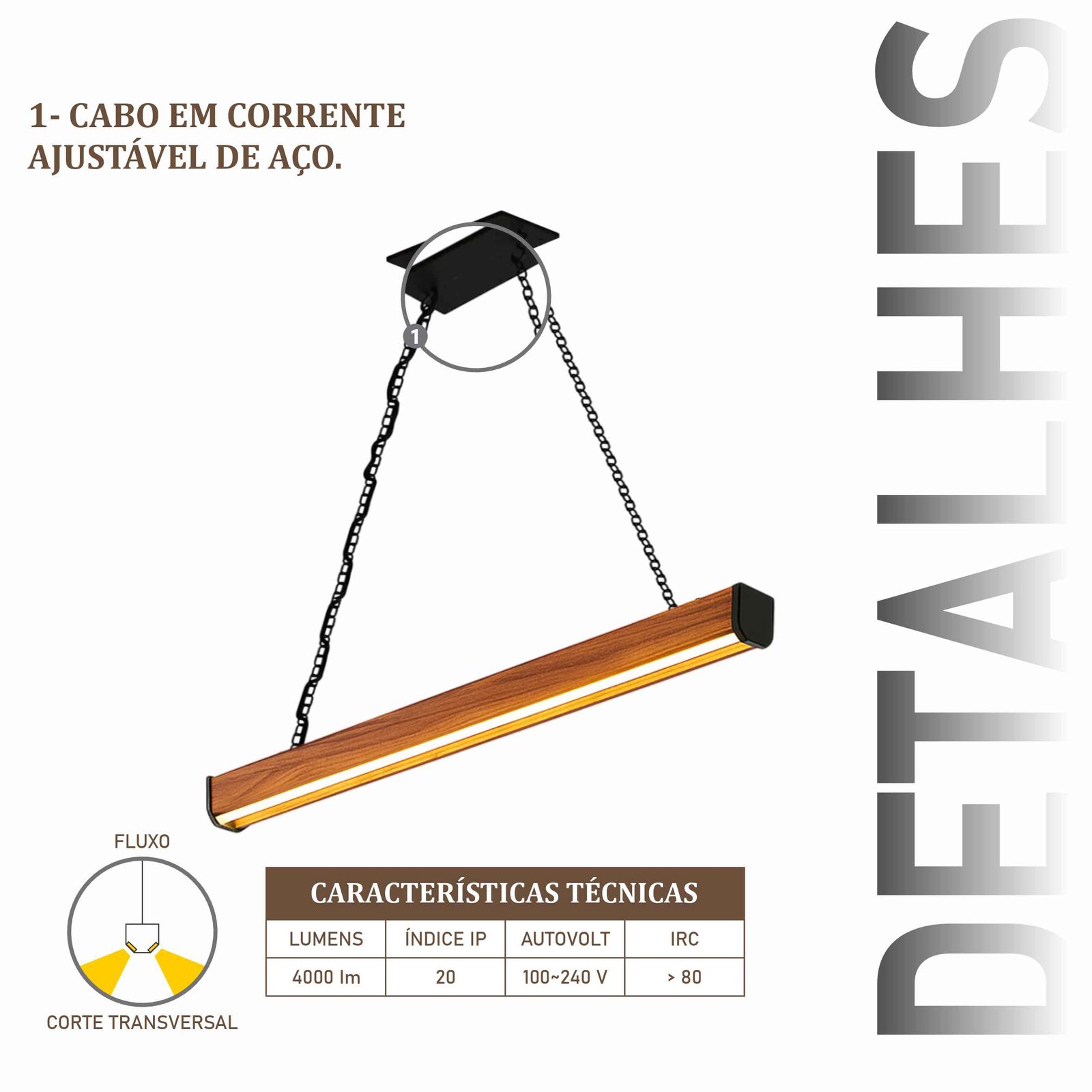 Pendente Led Jade Corrente 36w 4000lm Bivolt de Madeira Maciça Rústica de Demolição