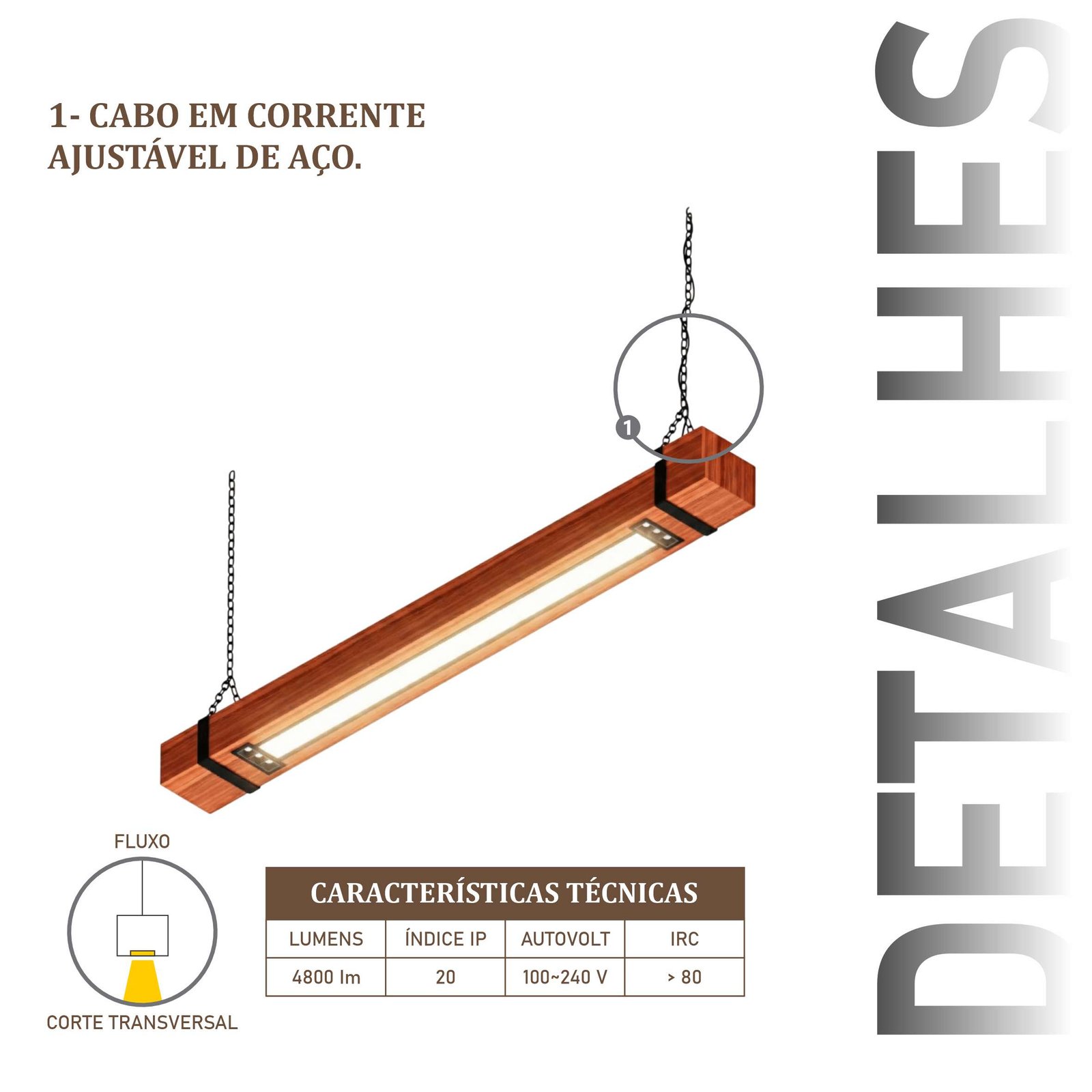 Nossas luminárias são produzidas com madeira de demolição. Cada peça é única, com marcas do tempo, veios escurecidos, furos e variações de cor que valorizam qualquer ambiente.