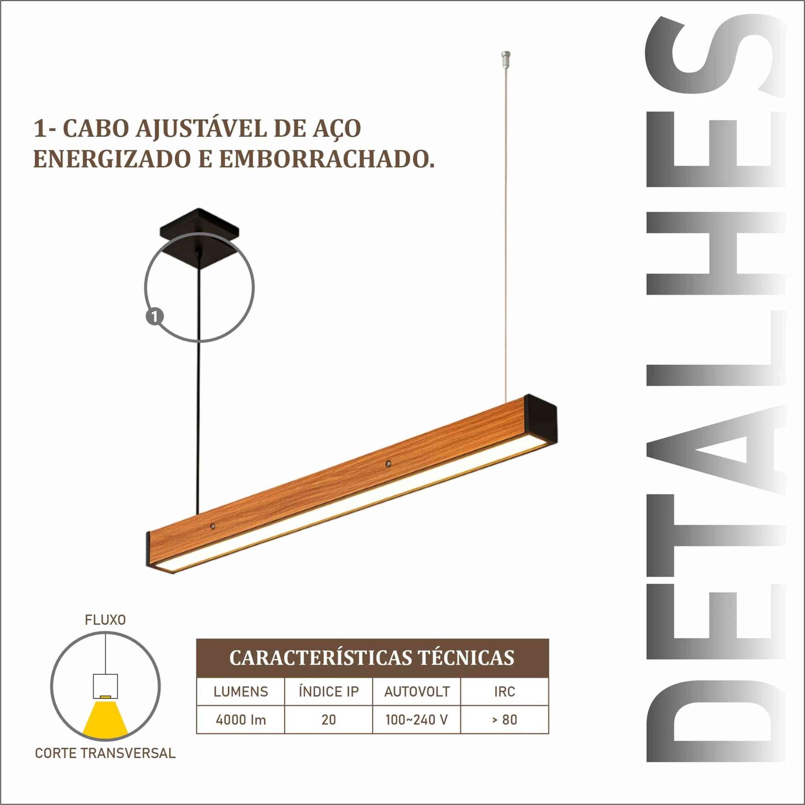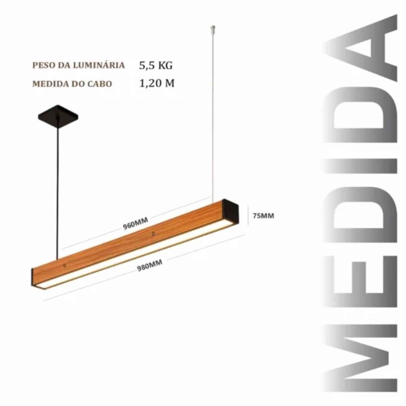 Pendente em madeira maciça de demolição. Produto com 1 perfil de LED no centro, com driver embutido de 36w. Design contemporâneo para diversos ambientes.