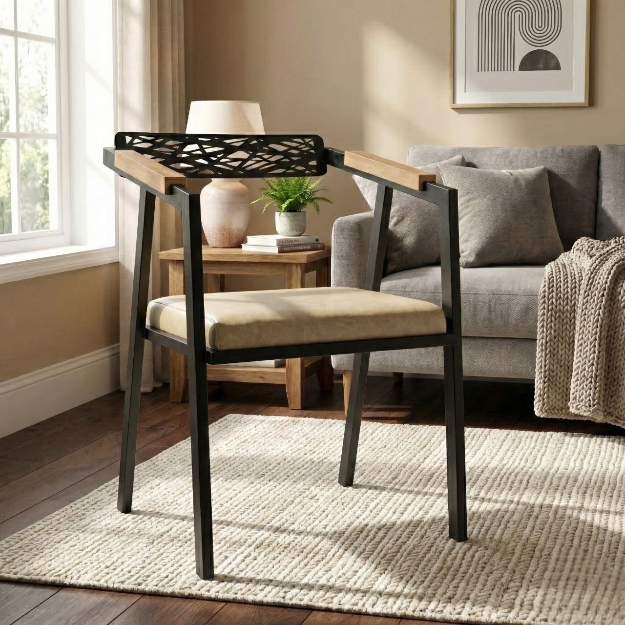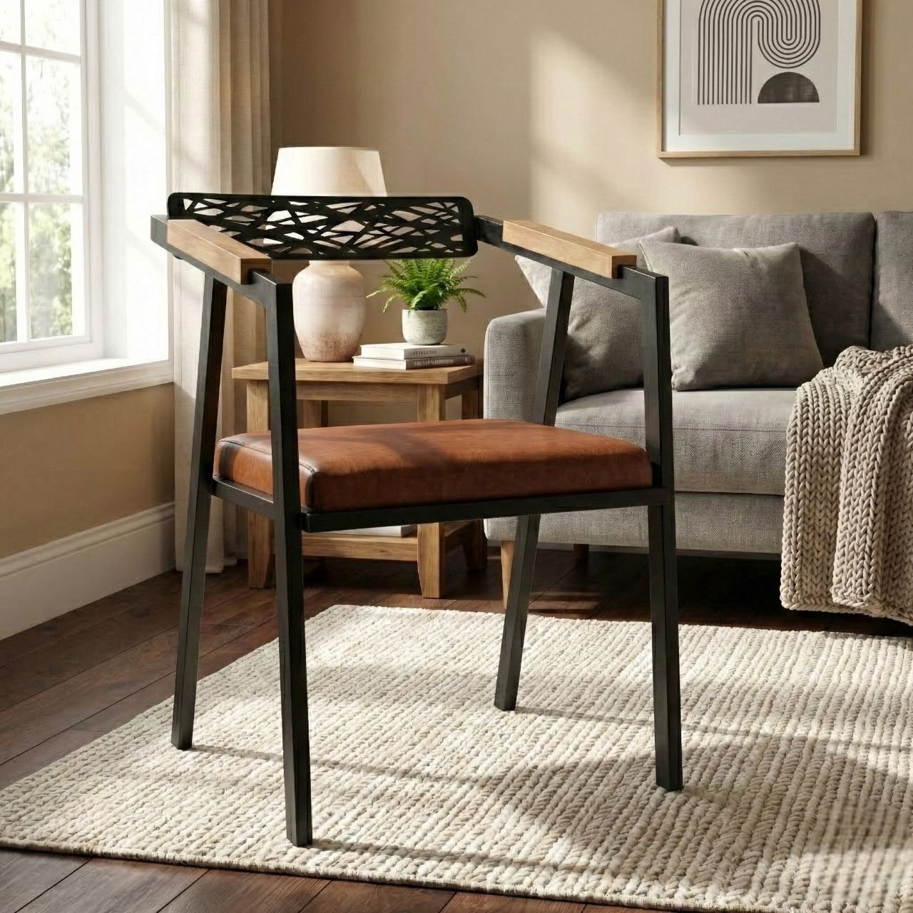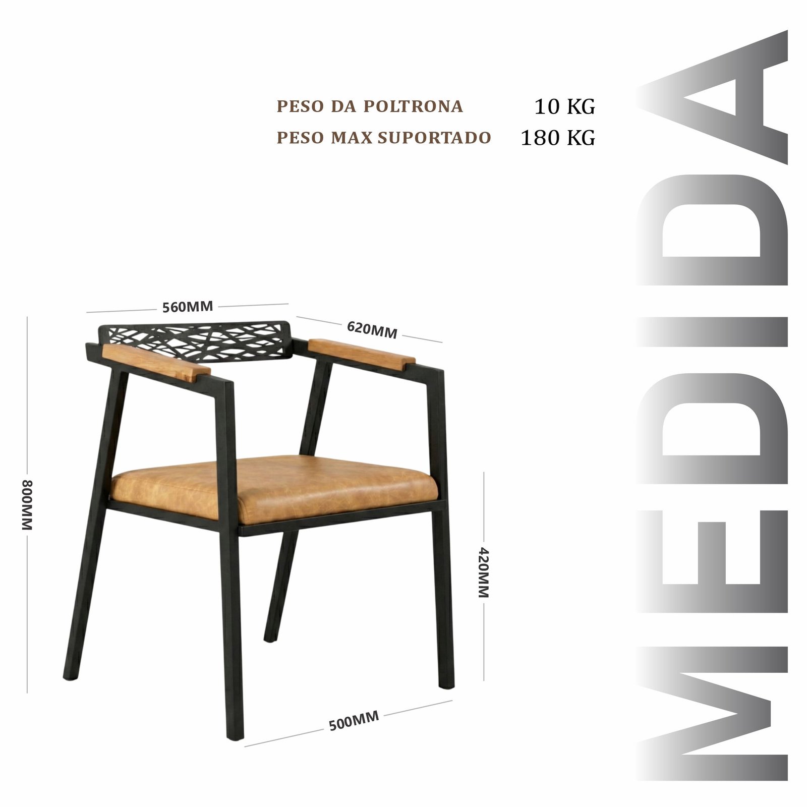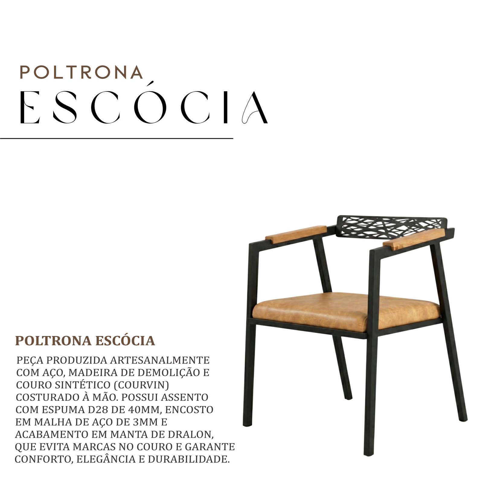 Peça exclusiva e artesanal, produzida à mão de aço com madeira de demolição e couro sintético costurado manualmente. Assento em espuma D28 garantem conforto.