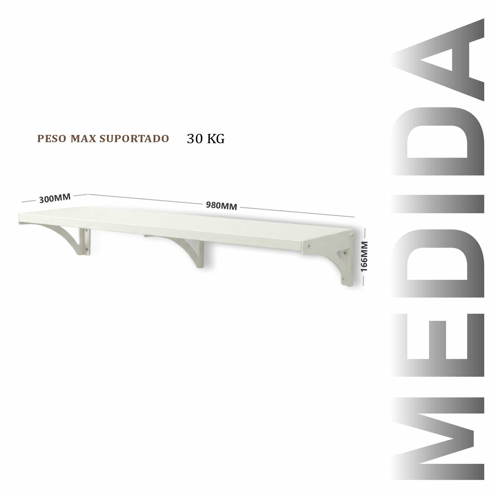Prateleira Andorra Aço Com Pintura Eletrostática Cor Branca 980x300mm